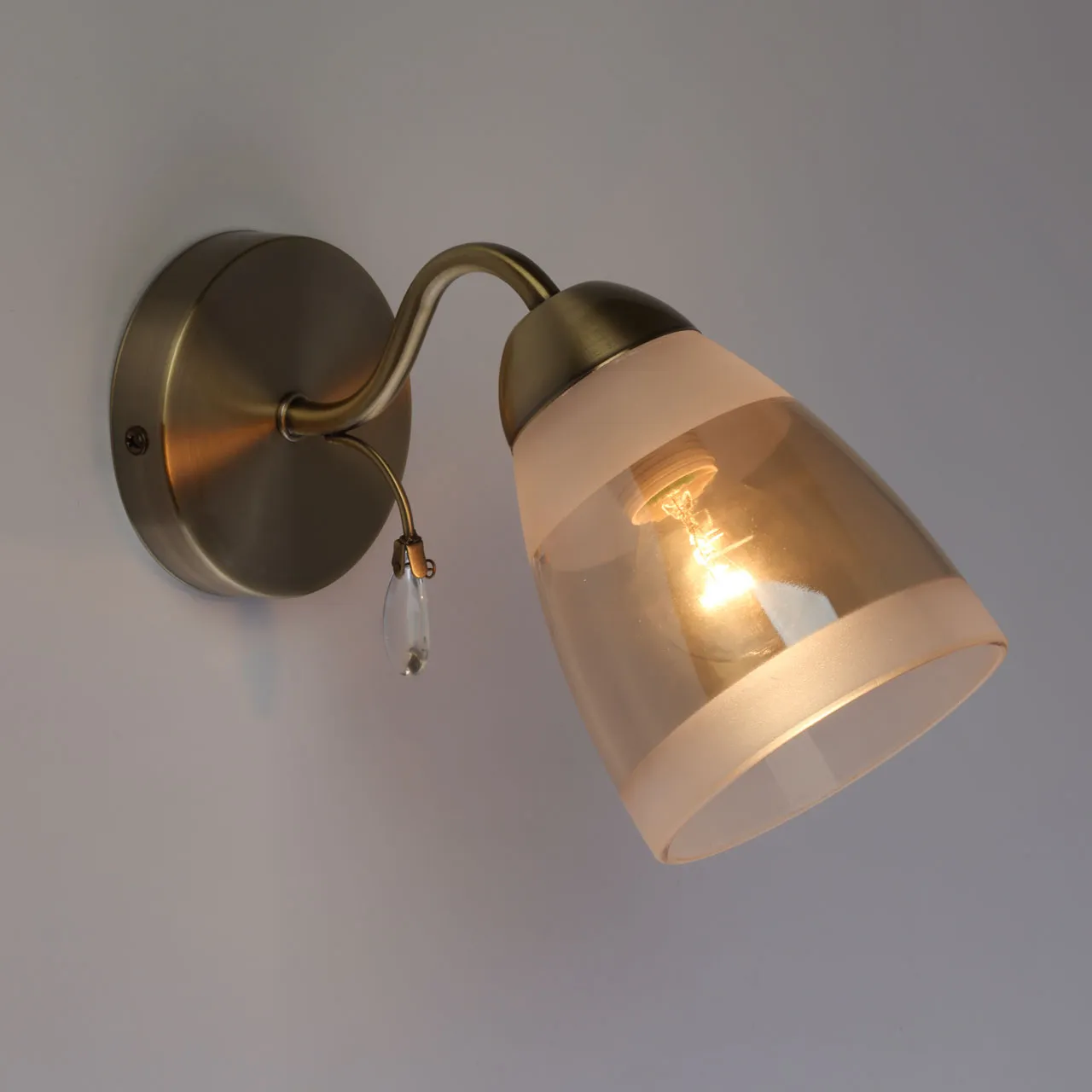 Основание/ металл/ античная бронза Плафон/ стекло/ матовое, шампань Декор/ хрустальное стекло/ про