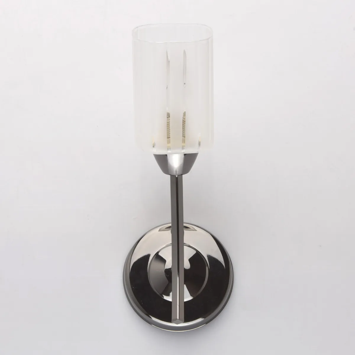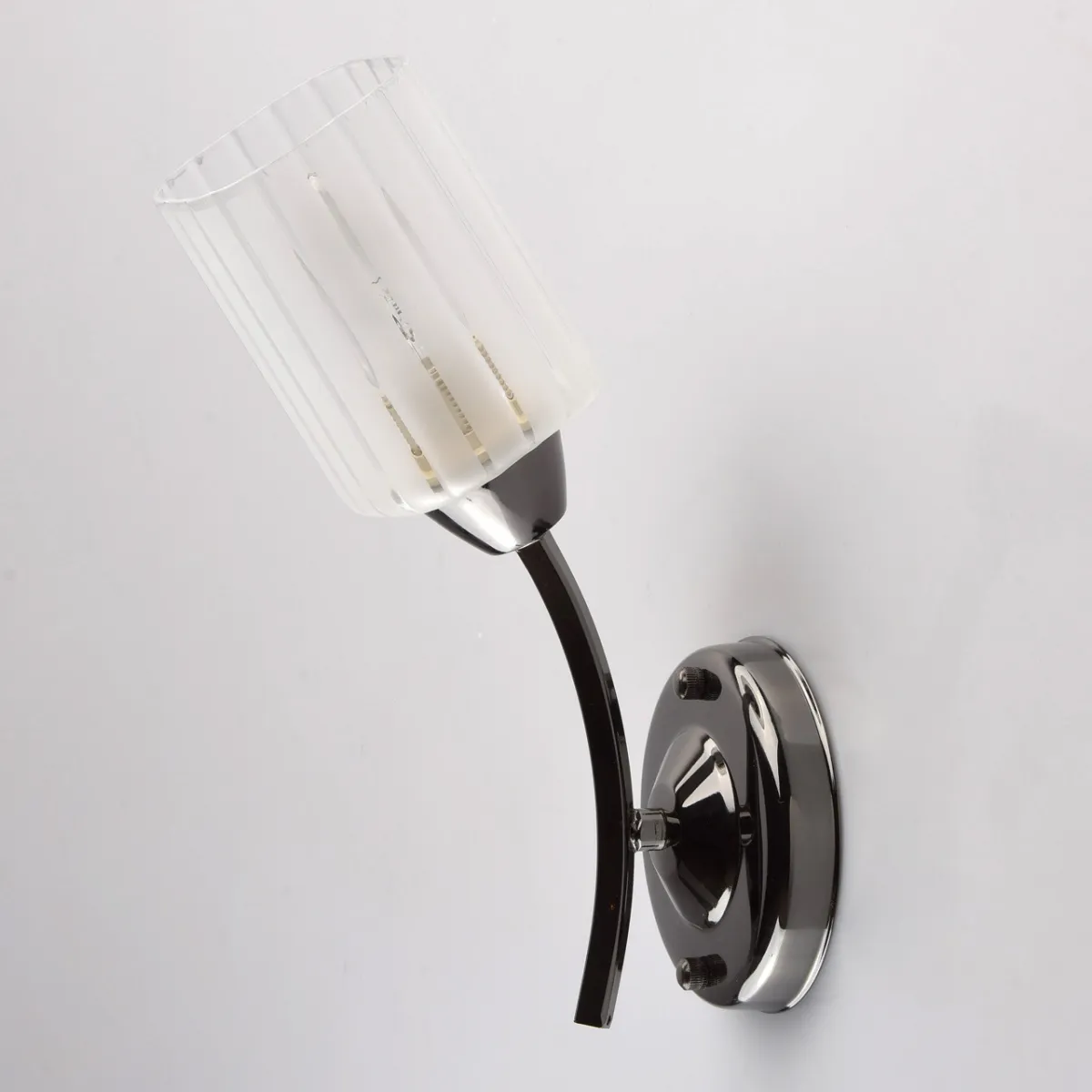 Металлическое основание гальванизировано в цвет антрацит. Стеклянный плафон.