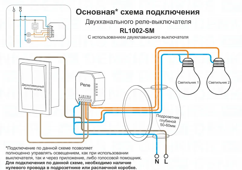 Wi-Fi реле-выключатель двухканальное Denkirs 2x1150Вт/150Вт для LED RL1002-SM купить в Москве по лучшей цене