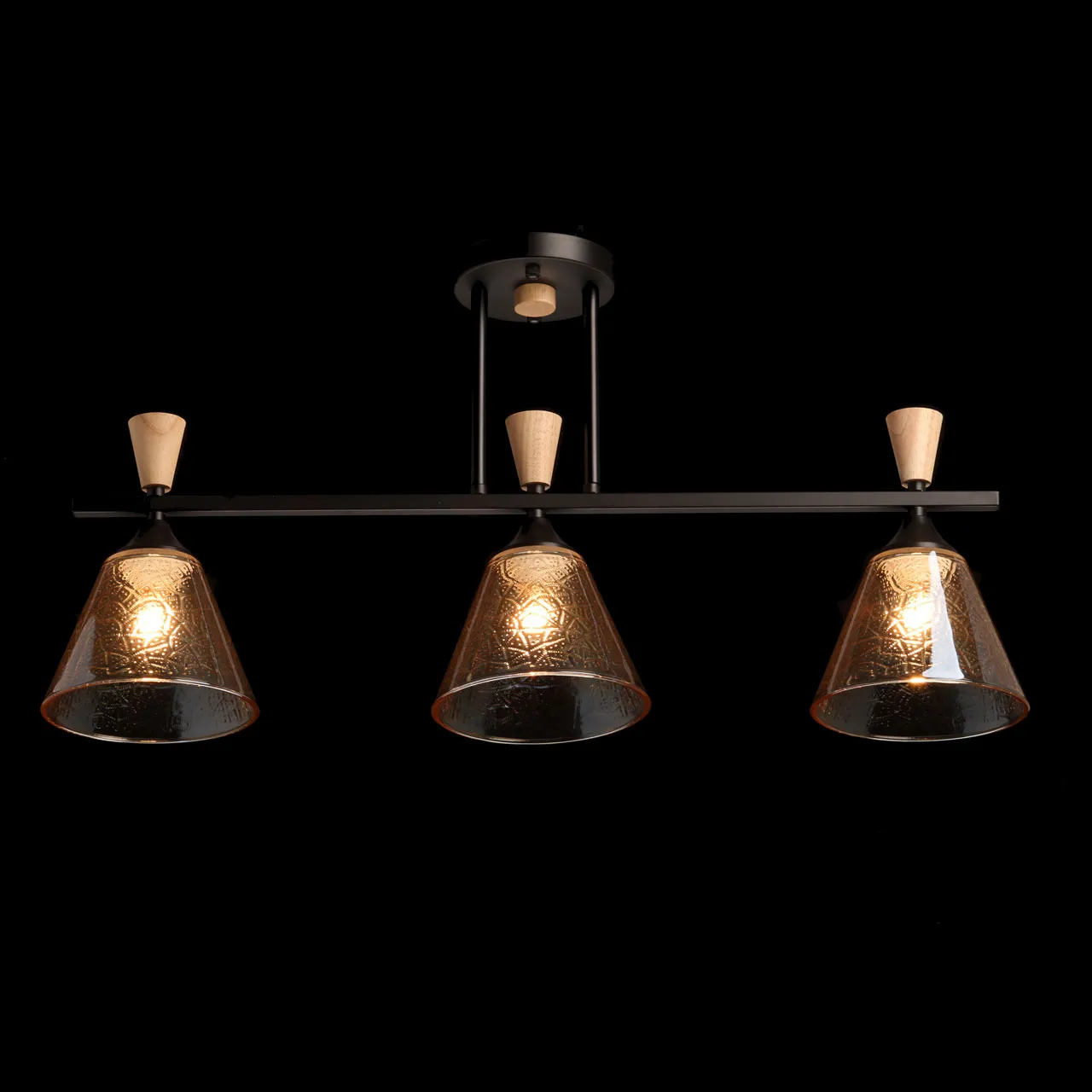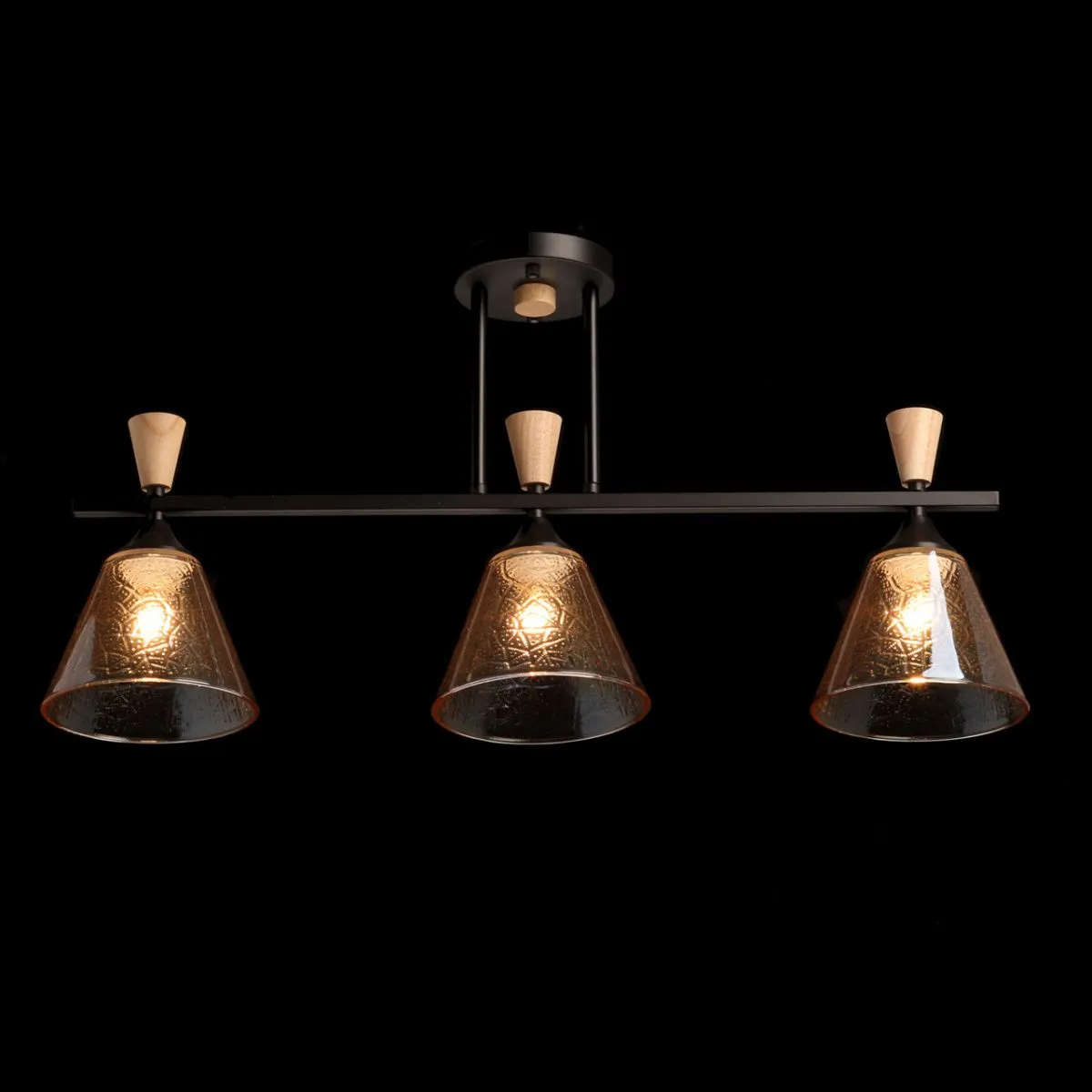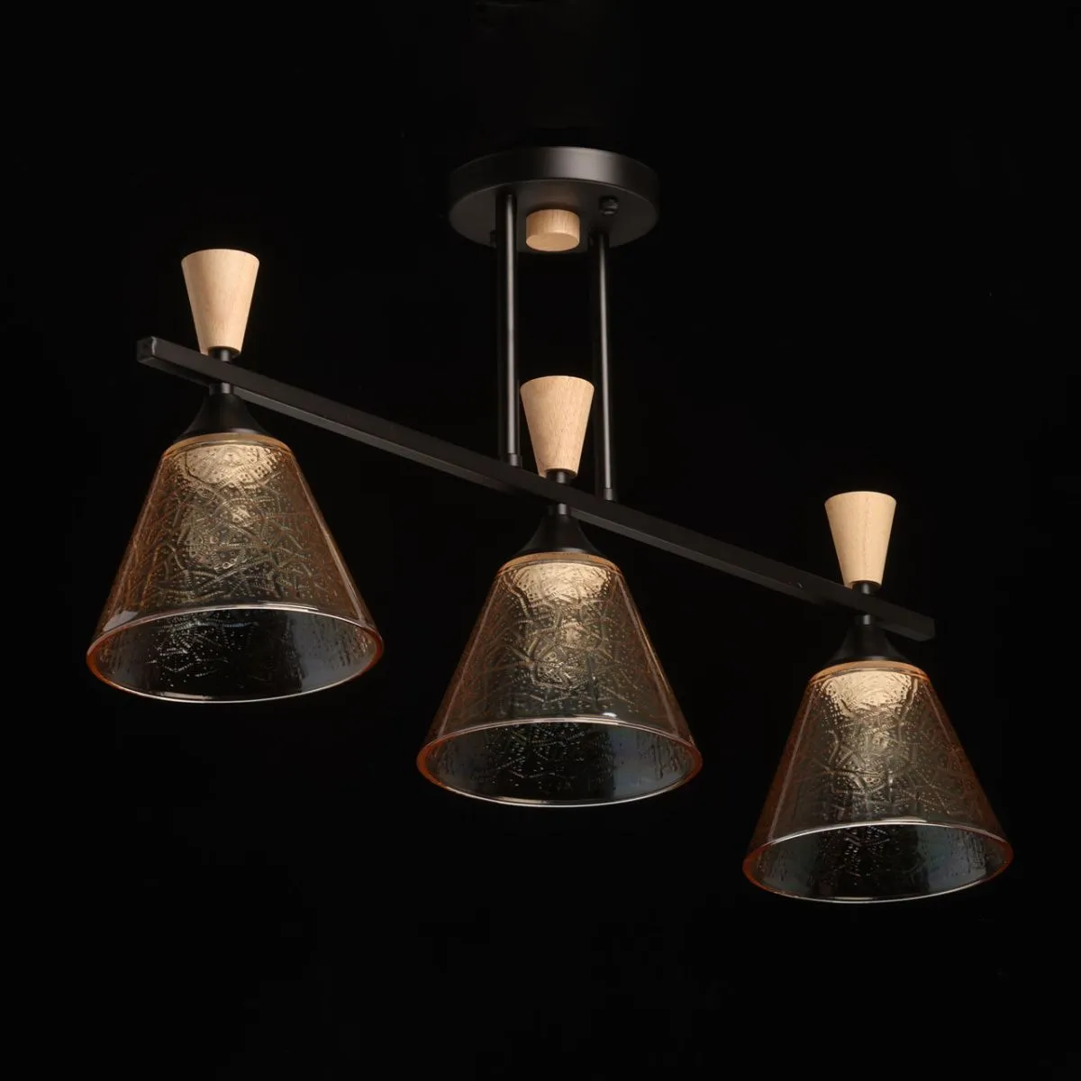 Основание/ металл/ черный Плафон/ стекло/ коньяк Декор/ дерево/ светлый