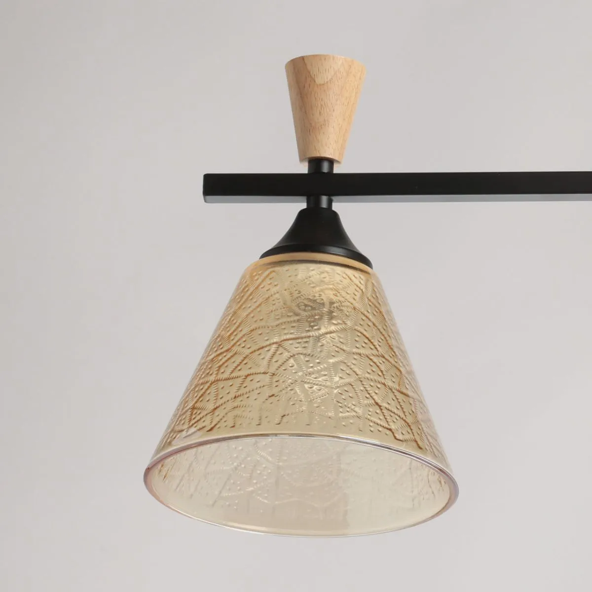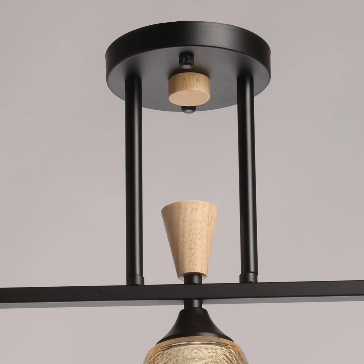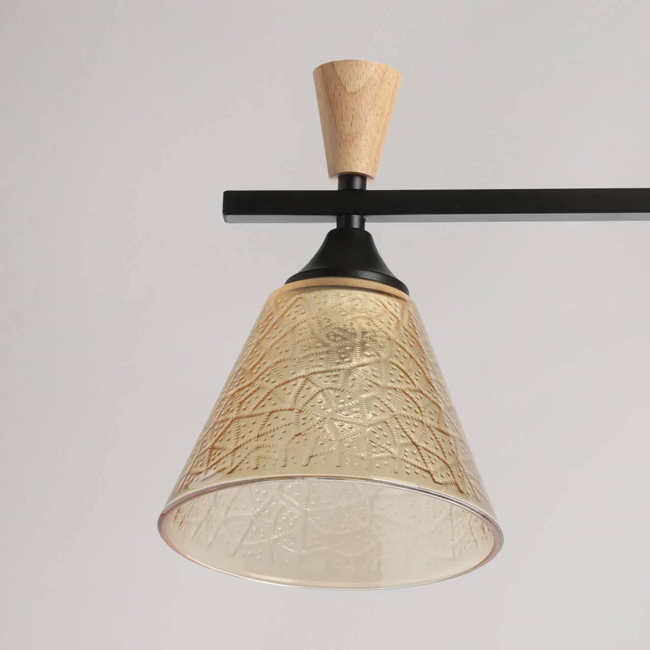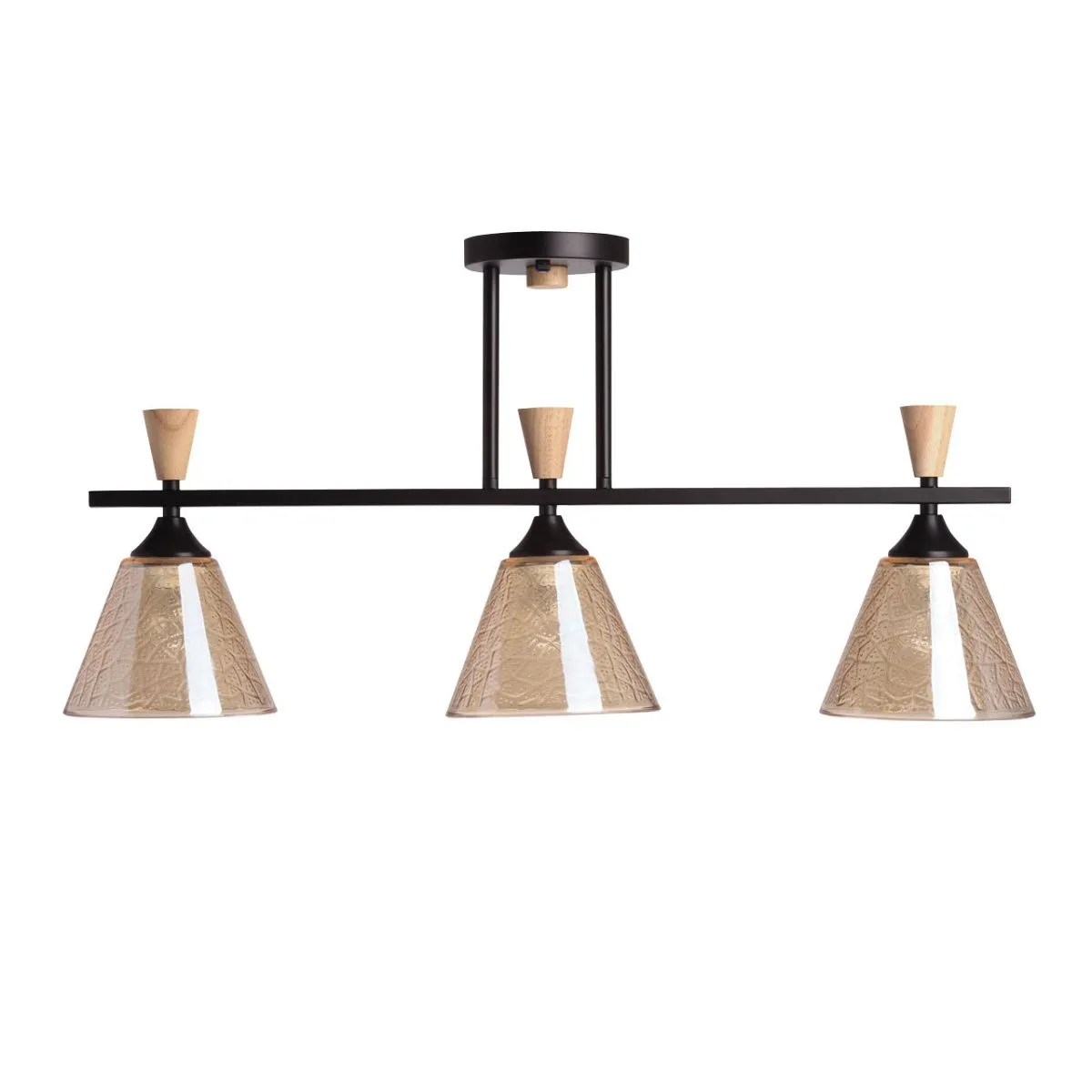 Основание/ металл/ черный Плафон/ стекло/ коньяк Декор/ дерево/ светлый