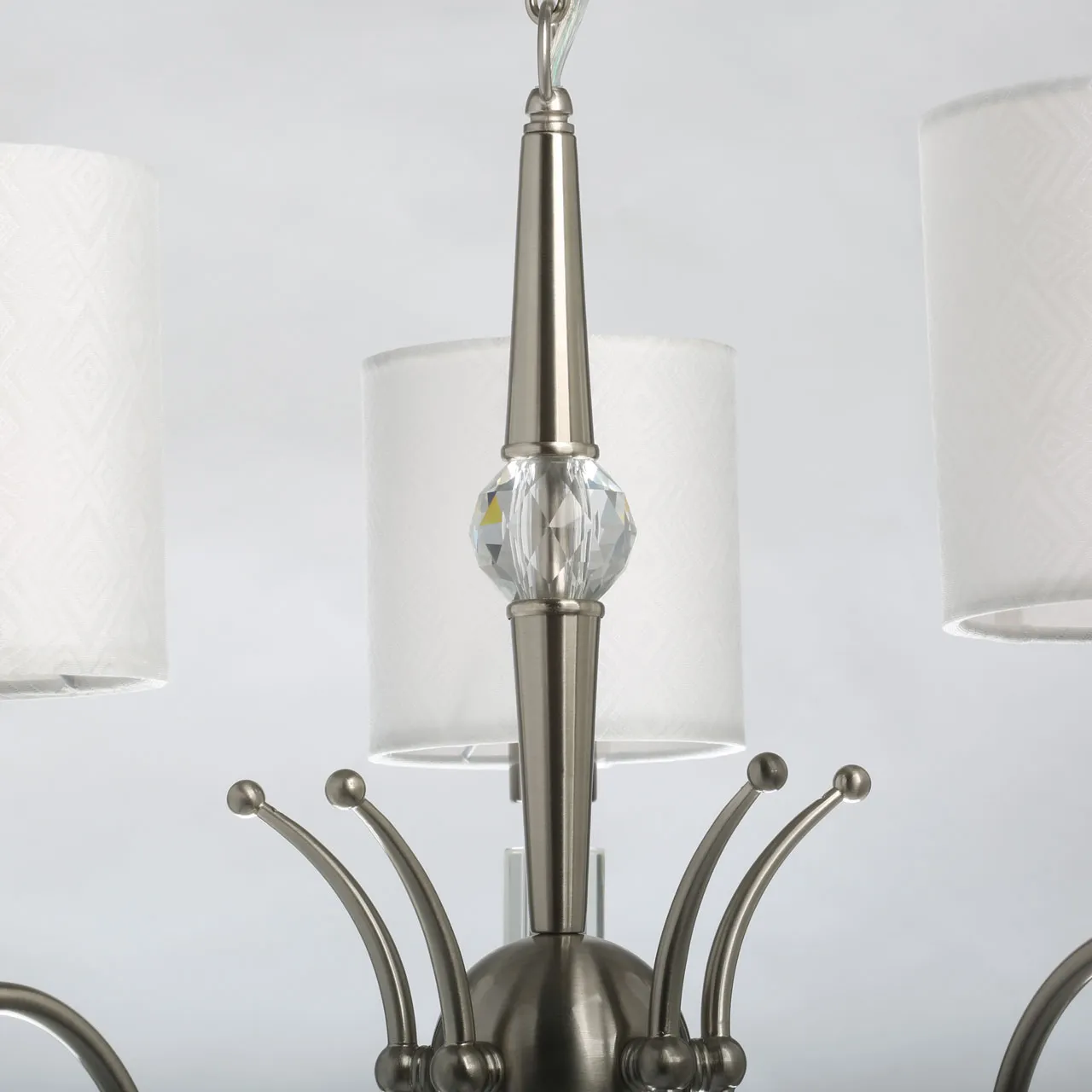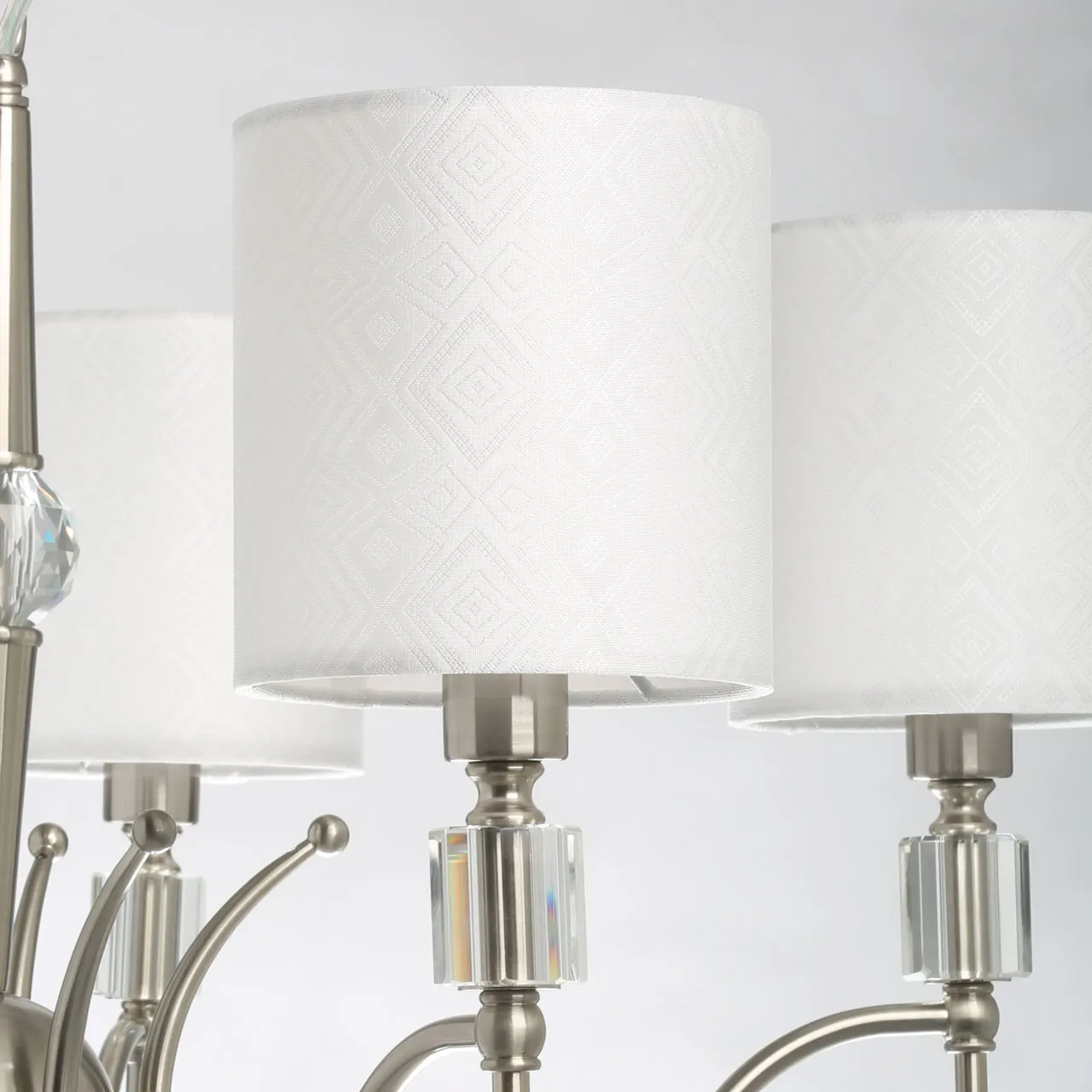Основание/ металл/ никель Абажур/ текстиль, акрил/ белый, прозрачный Декор/ хрусталь/ прозрачный