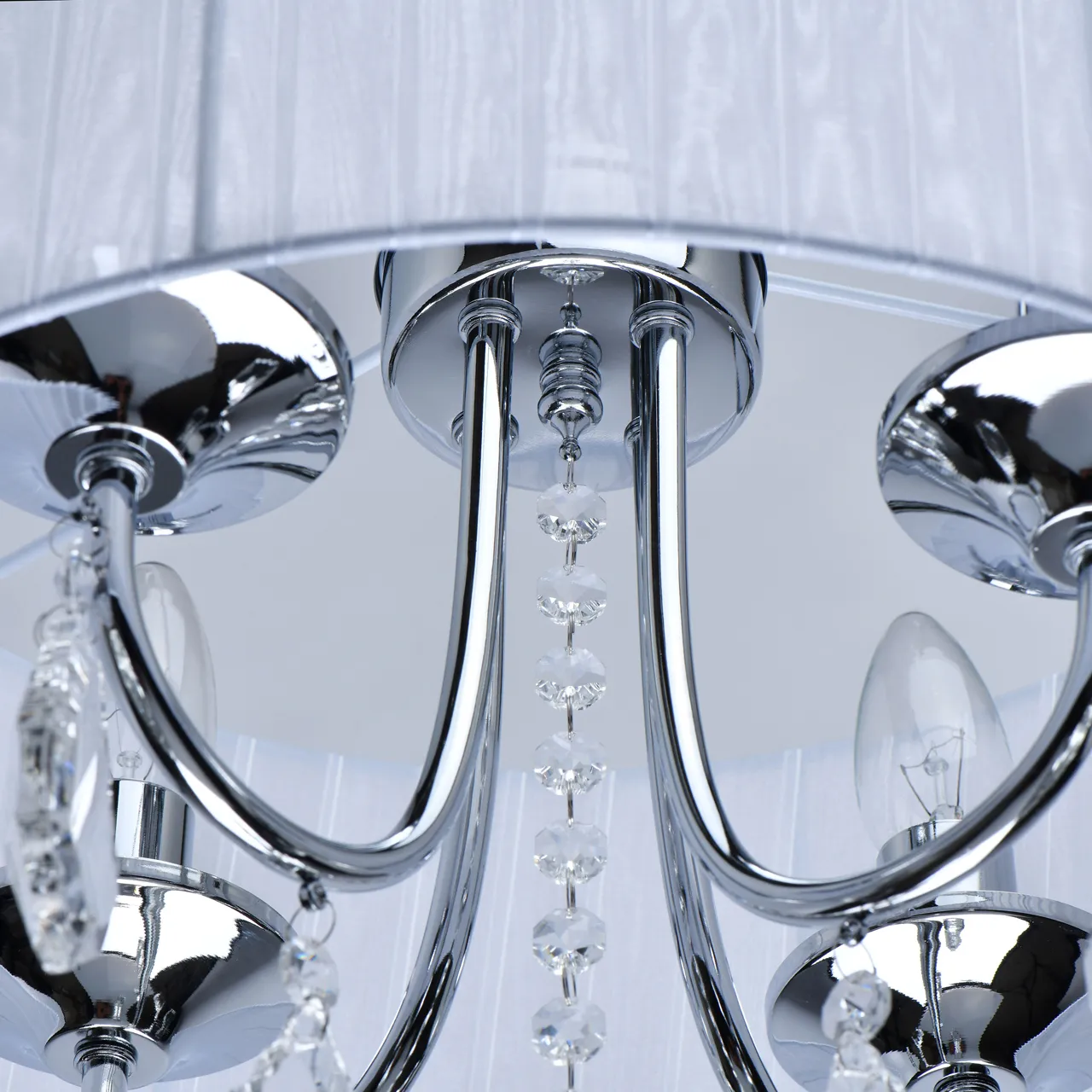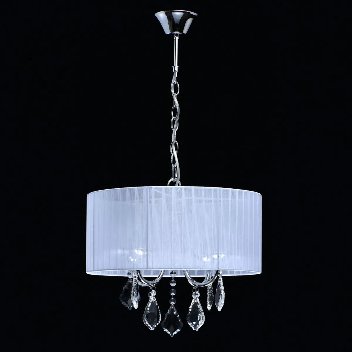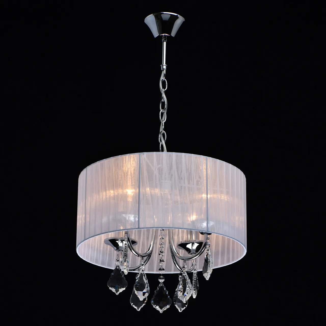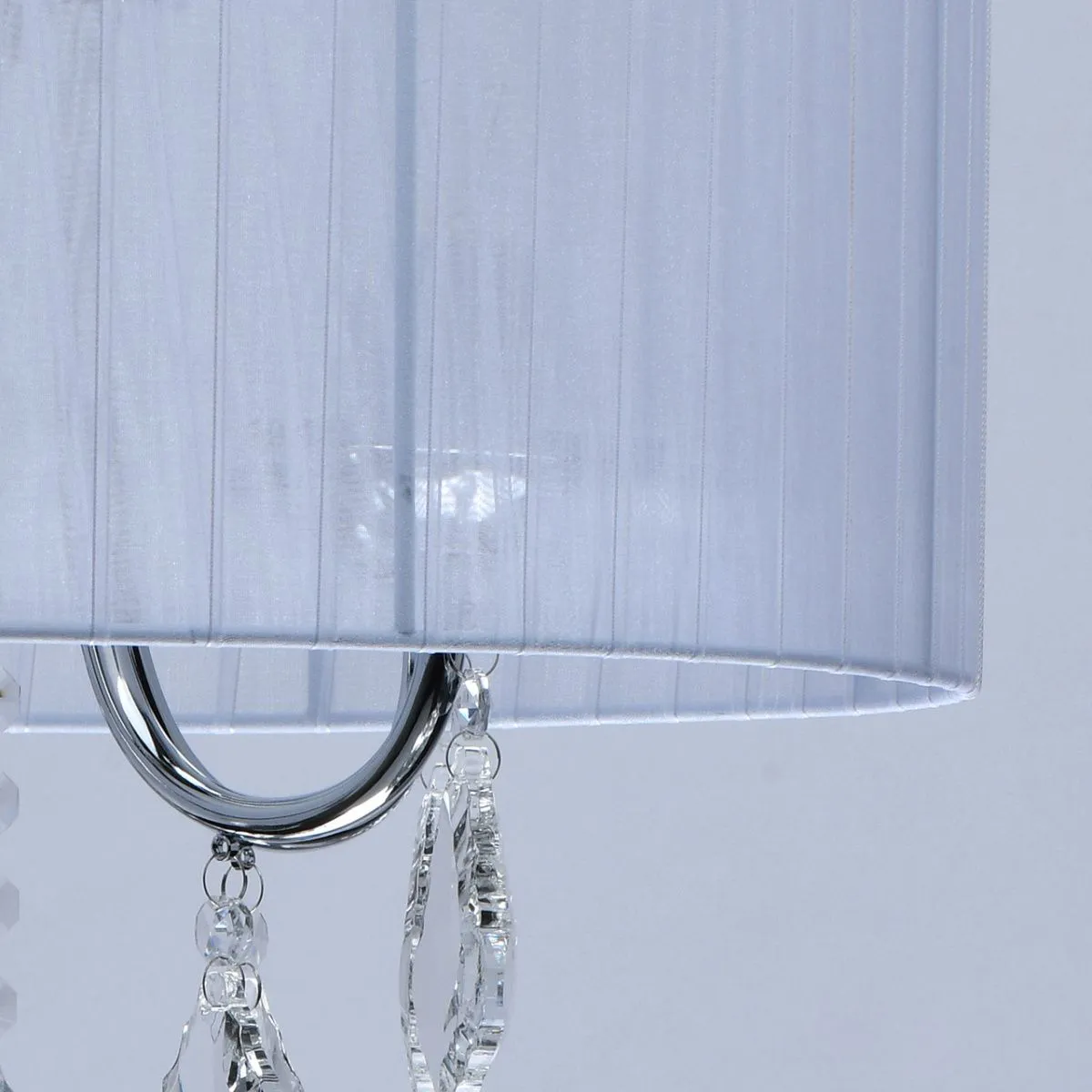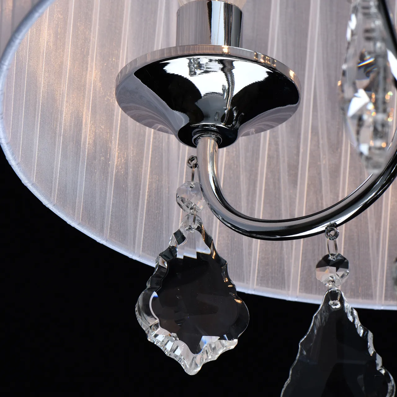 Основание/металл/хром Плафон/органза/белый Декор/хрусталь/прозрачный