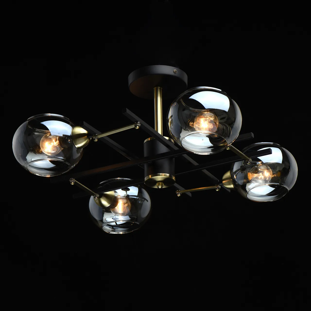 Основание/ металл/ черный, античная латунь. Плафон/ стекло/ шампань