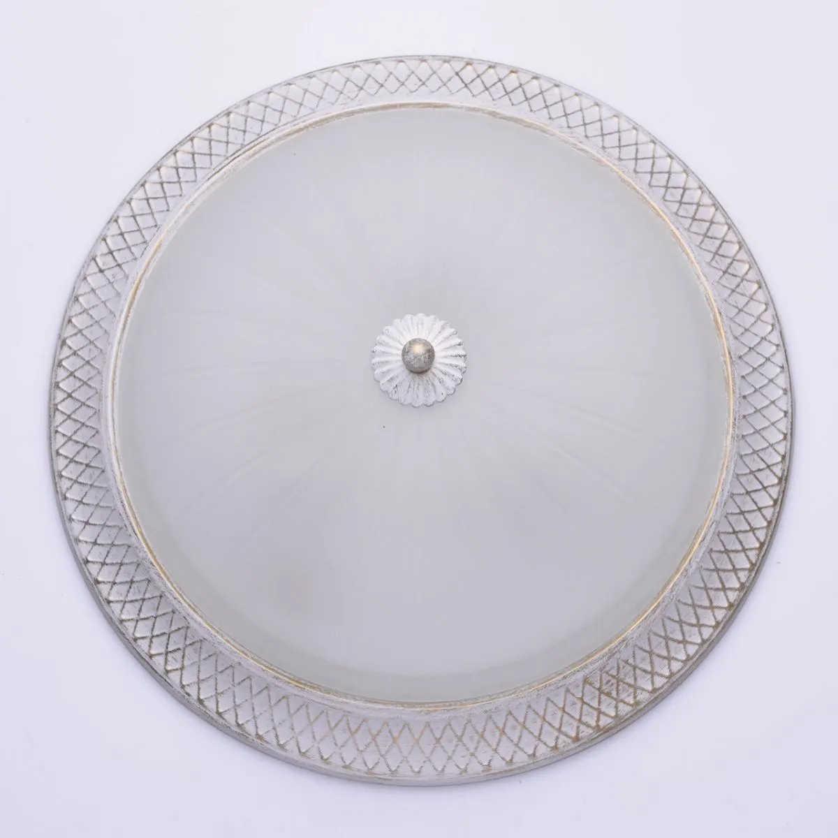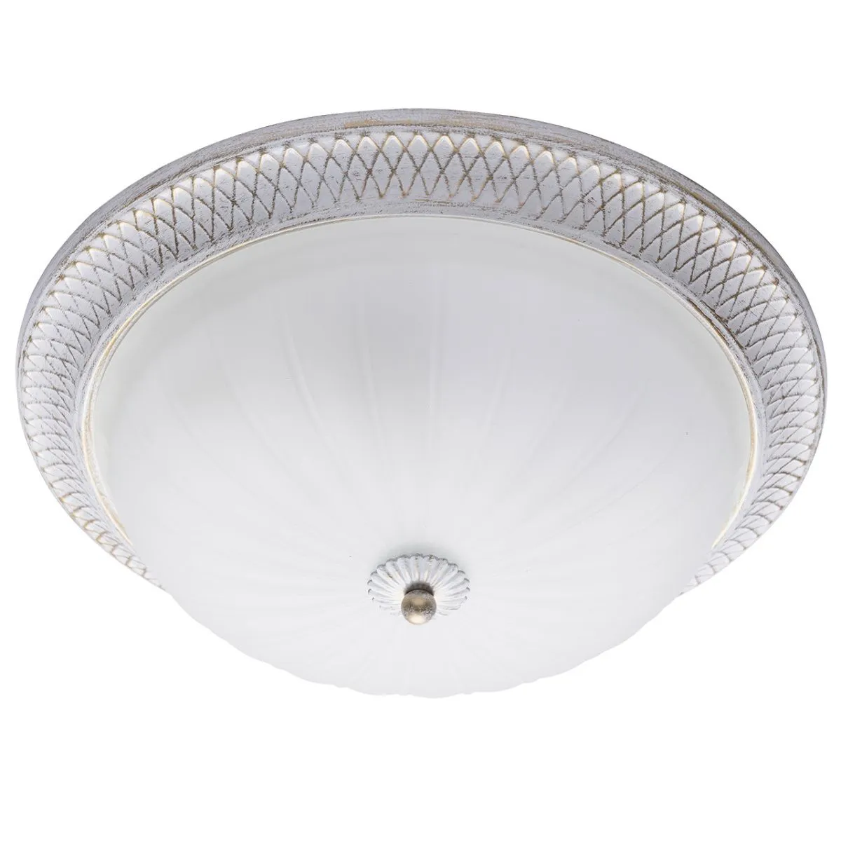 Металлическое основание белого цвета с золотистой патиной. Плафоны: матовый стеклянный плафон.